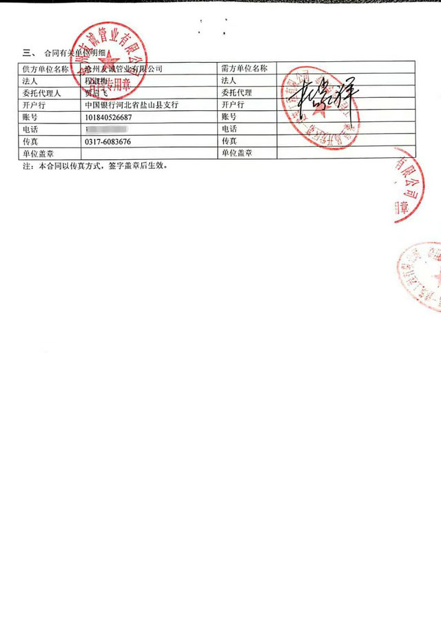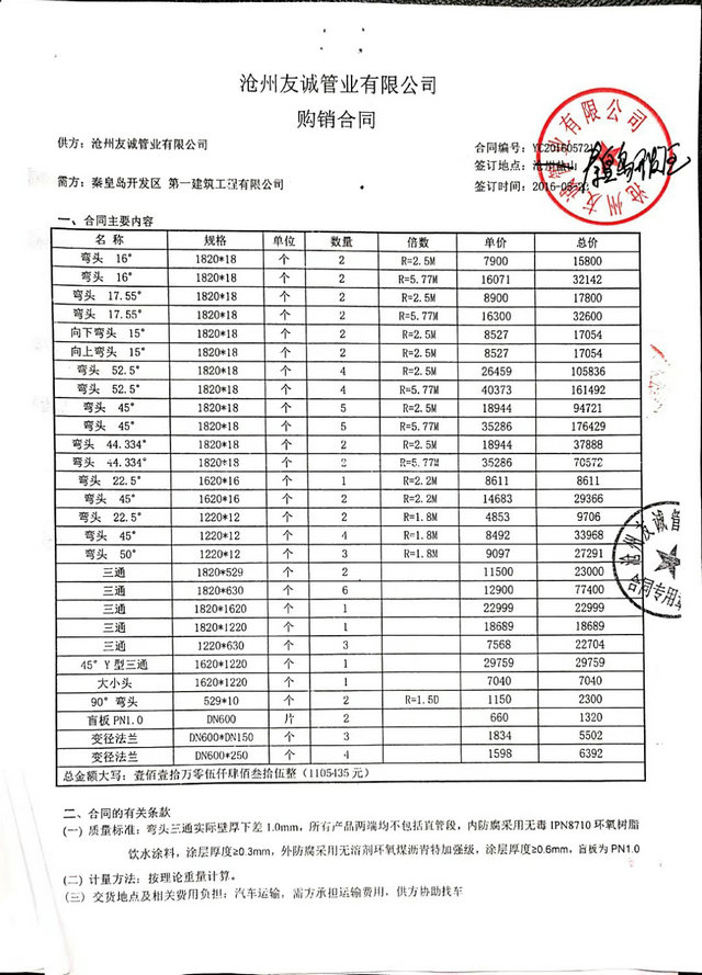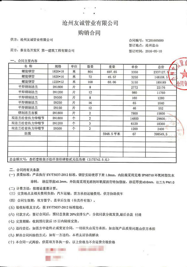 秦皇島開發(fā)區(qū)第一建筑工程有限公司與我公司,2016年簽訂秦皇島開發(fā)區(qū)引青供水工程項(xiàng)目防腐管道合同,我們已最優(yōu)質(zhì)的產(chǎn)品質(zhì)量,順利愉快的完成了這次合作,感謝客戶對(duì)我們的信賴,我公司將一如既往再創(chuàng)輝煌
